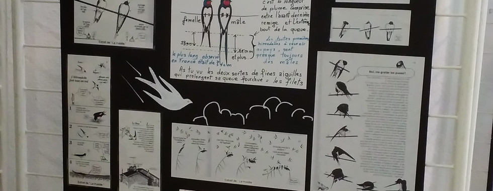Pour l'expo des panneaux ont étés créés: l'hirondelle sous beaucoup de ses formes , les hirondelles sont présentes sur le Domaine Roussille depuis de nombreuses années.