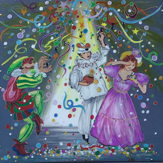 création conçue et peinte entièrement à la main sur verre organique et toile 1m x 1m